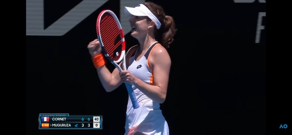 As is often the case when a player of Cornet’s nature scores an improbable victory such as this one, there were questions about why she doesn’t produce this level on a consistent basis. For me, the essence of Cornet was perfectly illustrated by an exchange between the commentators on Aus Open Radio. Abigail Johnson, the lead commentator, posed the question as to why we so rarely see this sort of tennis from the 31-year-old. Cornet has made the fourth round at all the majors over a span of more than eleven years, but has gone no further. Johnson’s co-commentator rather succinctly replied “It’s like wanting Christmas lunch every day.” It’s lazy to compare her to her compatriot Gael Monfils, (on whom Scott incidentally wrote a beautiful piece earlier this week), but it’s difficult to resist when there are so many similarities. Like Monfils, Cornet’s tennis is such that, were she more focused and dialled in, chances are we wouldn’t see some of the highlight reels we do get from her, nor would we find her occasional peaks such as this one so incredibly uplifting. Christmas lunch is so feverishly anticipated because it only occurs once a year. I’d venture that opinions on Brussels sprouts would be far less frequently complimented if they were part of a weekly meal. Cornet has left tennis fans scratching their heads both for better and for worse over her career which I was surprised to see has spanned 16 years. Her amazing stroke play has been compromised by her attitude towards the sport at times. Her rank of 61 in the world does her talent no justice but with a player like her, the ranking is almost academic.