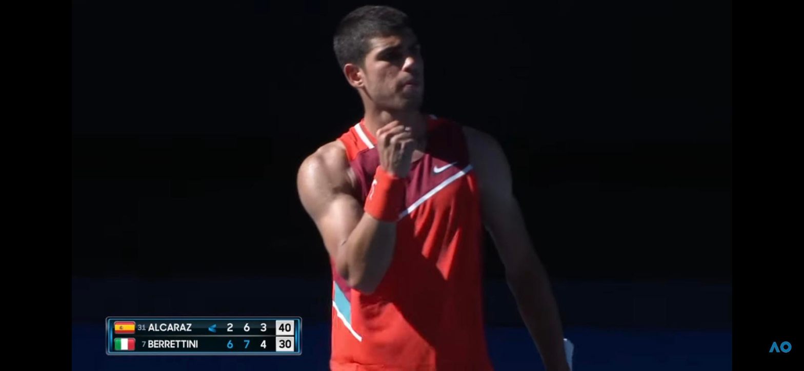 In many ways, this match was reminiscent of last year’s Alcaraz-Tsitsipas U.S. Open thriller: third round, five sets, promising youngster vs. established top-tenner. A lot has changed since that match, though — Alcaraz has made the jump from future star to the future star who is clearly better than his peers in a few short months. There is both external and internal pressure now, lots of it. Alcaraz was seeded 24 spots lower than Berrettini, but the Australian Open odds tracker thought he was the favorite. I thought he was the favorite. Alcaraz had beefed up his serve during the offseason and added a ton of muscle to his frame, so much so that his sleeveless kit didn’t look any weirder on him than it did on a young Nadal.