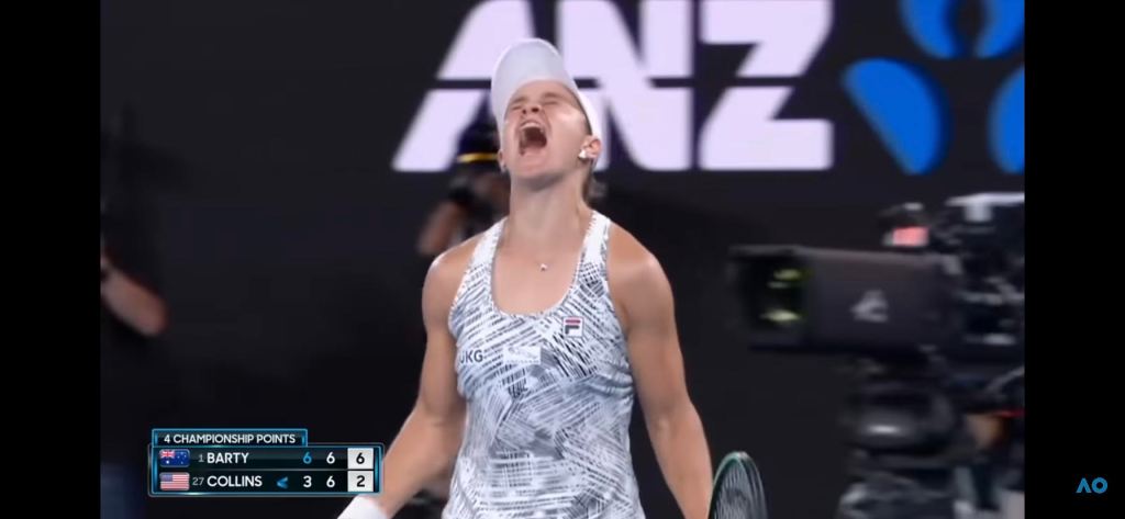 From there, Barty was practically untouchable. Collins gathered herself commendably to hold serve for 6-5 while the vehemently pro-Barty crowd cheered her faults, but Barty would not allow her any further inroads. In the tiebreak, the Aussie took a decisive lead with a forehand winner and a smash. On match point, she ran down a Collins approach backhand and passed her cleanly with a crosscourt forehand. The crowd erupted, noise bursting from the rapturous fans like an ace from Barty’s racket. Barty had been subdued for most of the match, fist-pumping only mildly and showing little frustration even as she went down 1-5 in the second set. But upon winning the match she threw her head back and roared, both fists clenched. As Courtney Nguyen pointed out on Twitter, Barty had celebrated her first two majors with disbelief, but this reaction pulsed with elation. She was thrilled, but she hadn’t surprised herself, she was merely matching her expectations for herself.