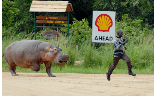 Whereas, somewhere in Africa, a hippo’s greater “talents” make it a problem both in the water and on land.