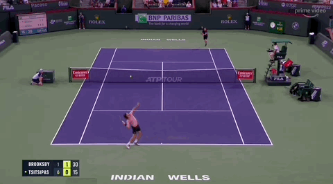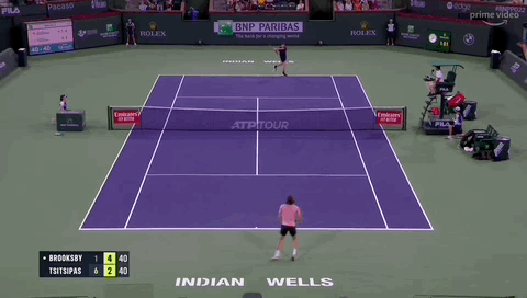 I’d love the stats on Brooksby’s backhand placement because it felt like Brooksby found the width required to make Tsitsipas perpetually uncomfortable on this wing. This width meant Tsitsipas very rarely got the opportunity to hit an inside-out forehand without doing some tricky footwork and couldn’t go backhand line with as much ease as he is used to (at 4-2, 15-15, we actually heard Brooksby say “You gotta get to the backhand first” when he pulled the trigger too early on a crosscourt forehand that Tsitsipas rifled back crosscourt).