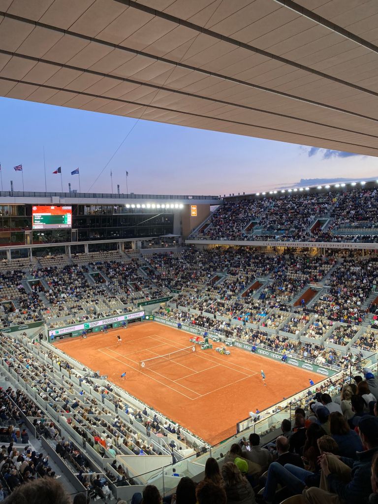 The match, despite its one-sided flow, was absorbing. Court Philippe-Chatrier is a gorgeous site for a tennis match. The sheer scale of the stadium is difficult to understand without being inside. There are layers upon layers. There are 30 or so entrances around the perimeter. My mom and I had to climb several flights of stairs to get to our seats. If there is an elegant way to stack 15,000 people in a giant box to watch two people hit a ball back and forth, Roland-Garros has it figured out with their show court.