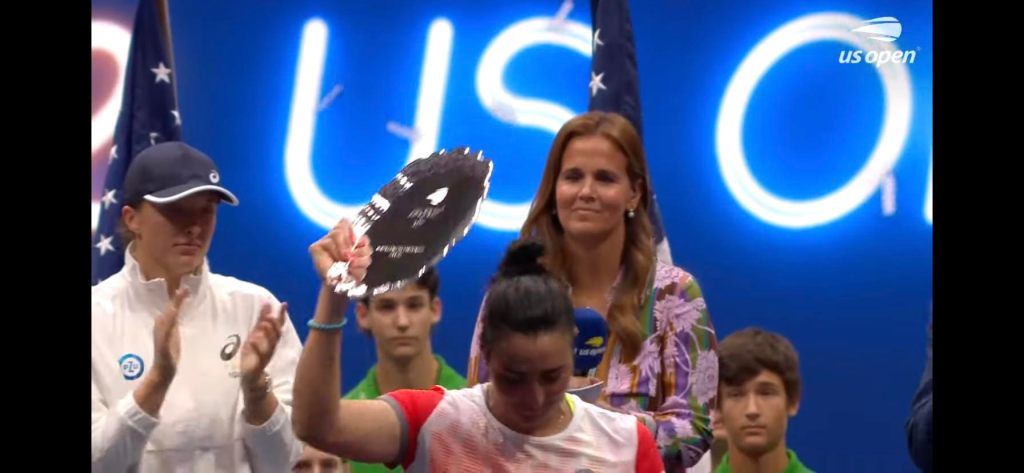 The Tunisian left Wimbledon with a lot to learn from and a lot to look forward to. “I was trying to win my serve at the beginning, but then I felt like I was going really fast, even making some mistakes. I felt like she was playing better in the second and third set because she was making less mistakes. I was expecting myself to return better and take the opportunities that I had to break her so many times. It is frustrating to play someone who serves really big and doesn’t give you the chance sometimes to take that break, but it wasn’t meant to be.” This is how Jabeur described her final against Rybakina last summer. She said to the line of reporters waiting to ask her questions that she had the Wimbledon trophy as her wallpaper, now she was going to think about replacing it with the U.S. open trophy. She got on her flight for the U.S. swing with a pair of titles under her belt and two finals to learn from, Wimbledon and a loss to Swiatek in Rome. And today, on September 10th, 2022, Jabeur was once again playing a final to achieve her long-lived dream.