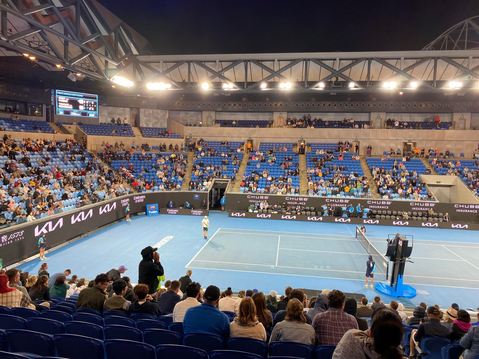 Let’s get the bad stuff out of the way first. Everything people are saying about how this match should never have gone so late, how it was unfair on everyone from the players to the unpaid ballkids who raced back and forth for six hours, is true. I doubt I can add to the issues that have already been pointed out and the potential solutions that have been put forth, but I can tell you what I saw inside Margaret Court Arena — there was the usher who had been on his feet since 6:00 p.m. and told me he had never stayed later than 2:30 a.m. (we all filed out of the stadium at around 4:15). A huge clump of fans left after the third set. Some of the fans who stayed asked if concessions were still open and looked blankly at the ushers when they were told places were closed. People ran out to the lone booth that remained open and came back with trays of hot chocolate and coffee and tea. Phones died, meaning people couldn’t call Ubers. Claire Stanley, one of the three biggest Murray fans on this Earth, had to leave because her phone ran out of juice and she needed to catch the last tram, which she barely made.