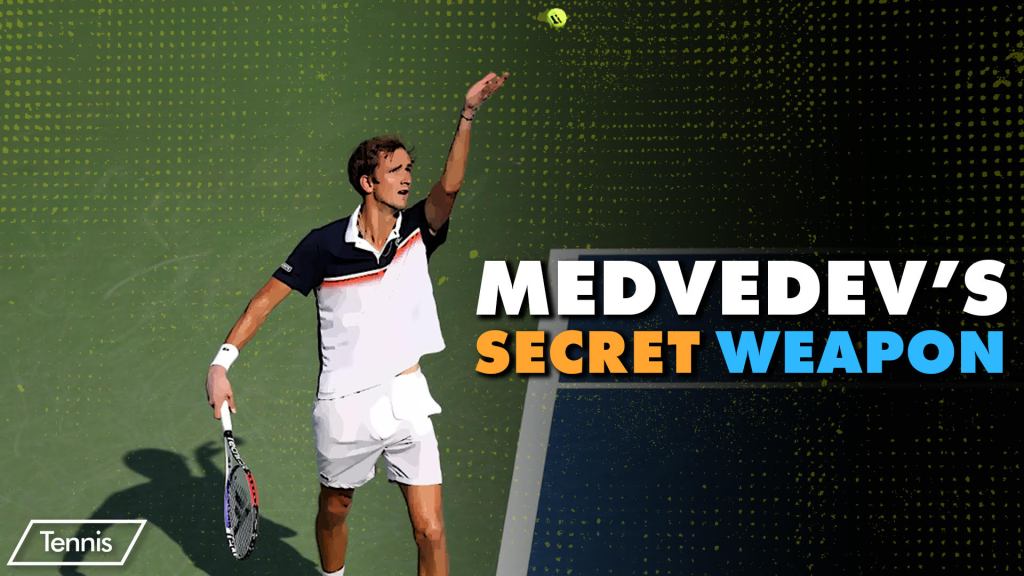Daniil Medvedev is a huge server, but his serve is made even tougher by his willingness to go for powerful second serves. Not only that, but his toss is unreadable, and in a different way from Roger Federer’s — Medvedev’s serve direction seemingly has little to no correlation with where he tosses the ball. Rafa managed to break him seven times in five sets, but many other opponents have and will struggle more.