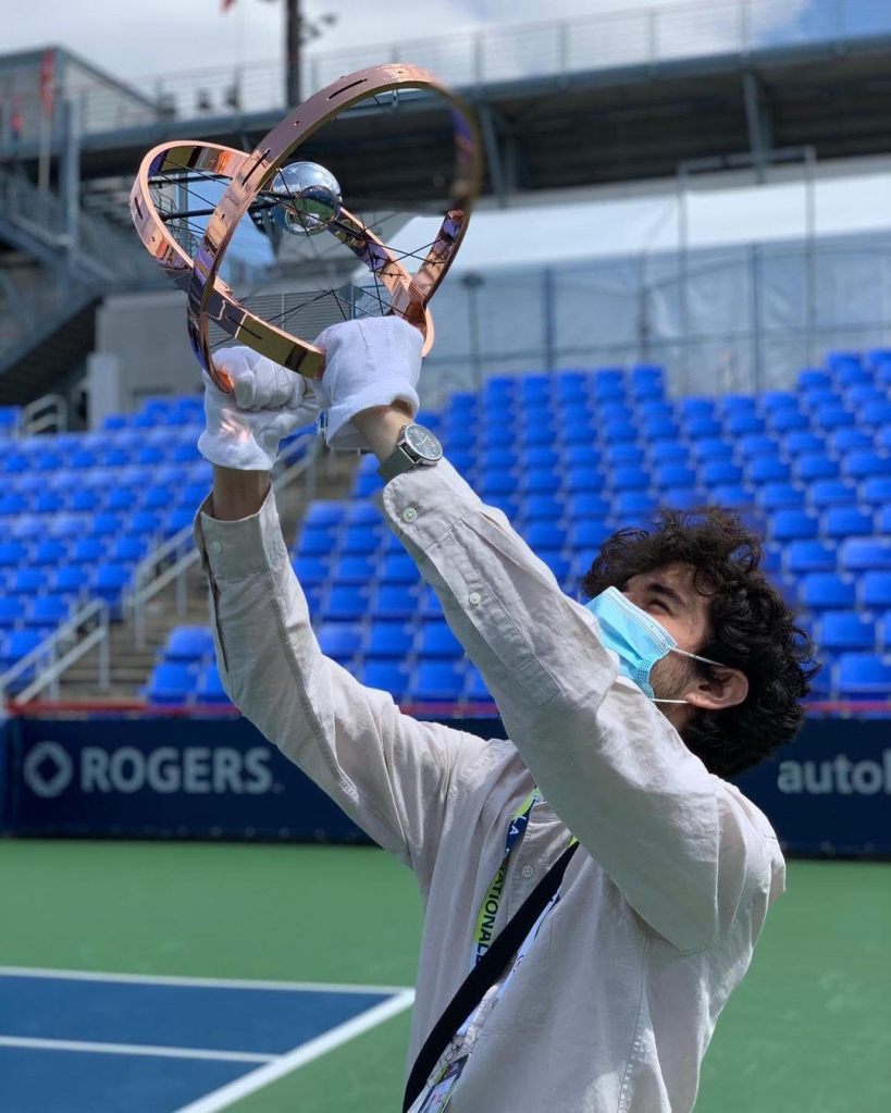 Me holding the National Bank Open trophy in Montreal, 2021, on finals day before play started. What a moment.